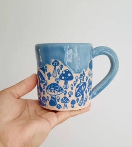 A unique handmade stoneware ceramic Blue mushrooms design mug. Handmade especially for you. A perfect gift for coffee and tea lovers.